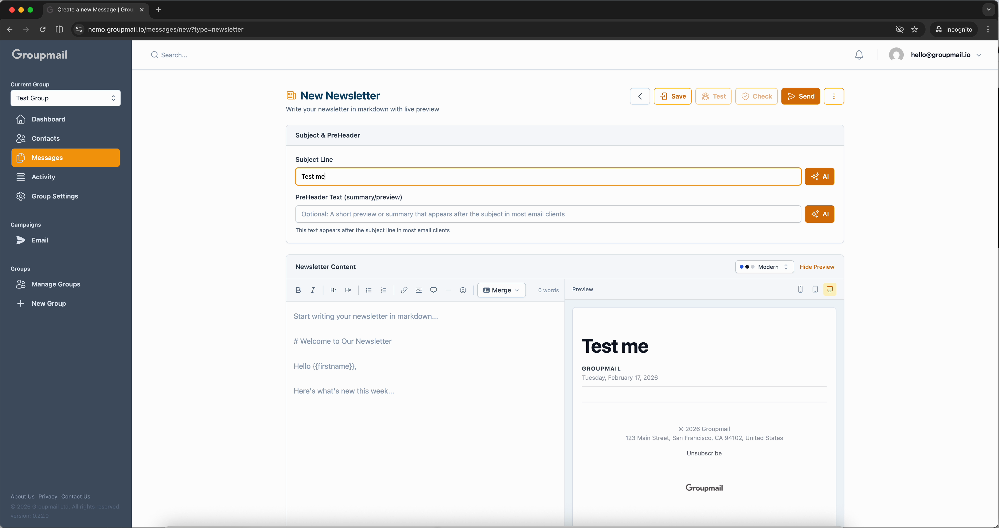 Sending your first newsletter with Groupmail takes less than three minutes. This guide walks you through every step — from creating your account to watching your campaign land in inboxes — so you can hit the ground running.
